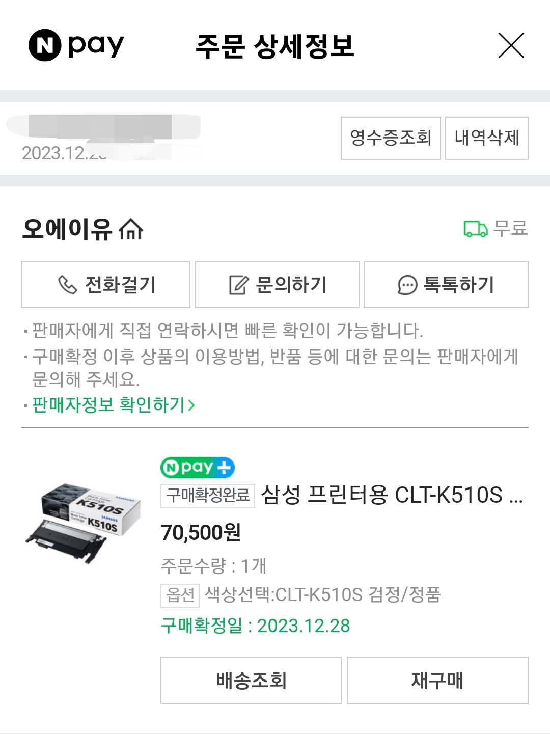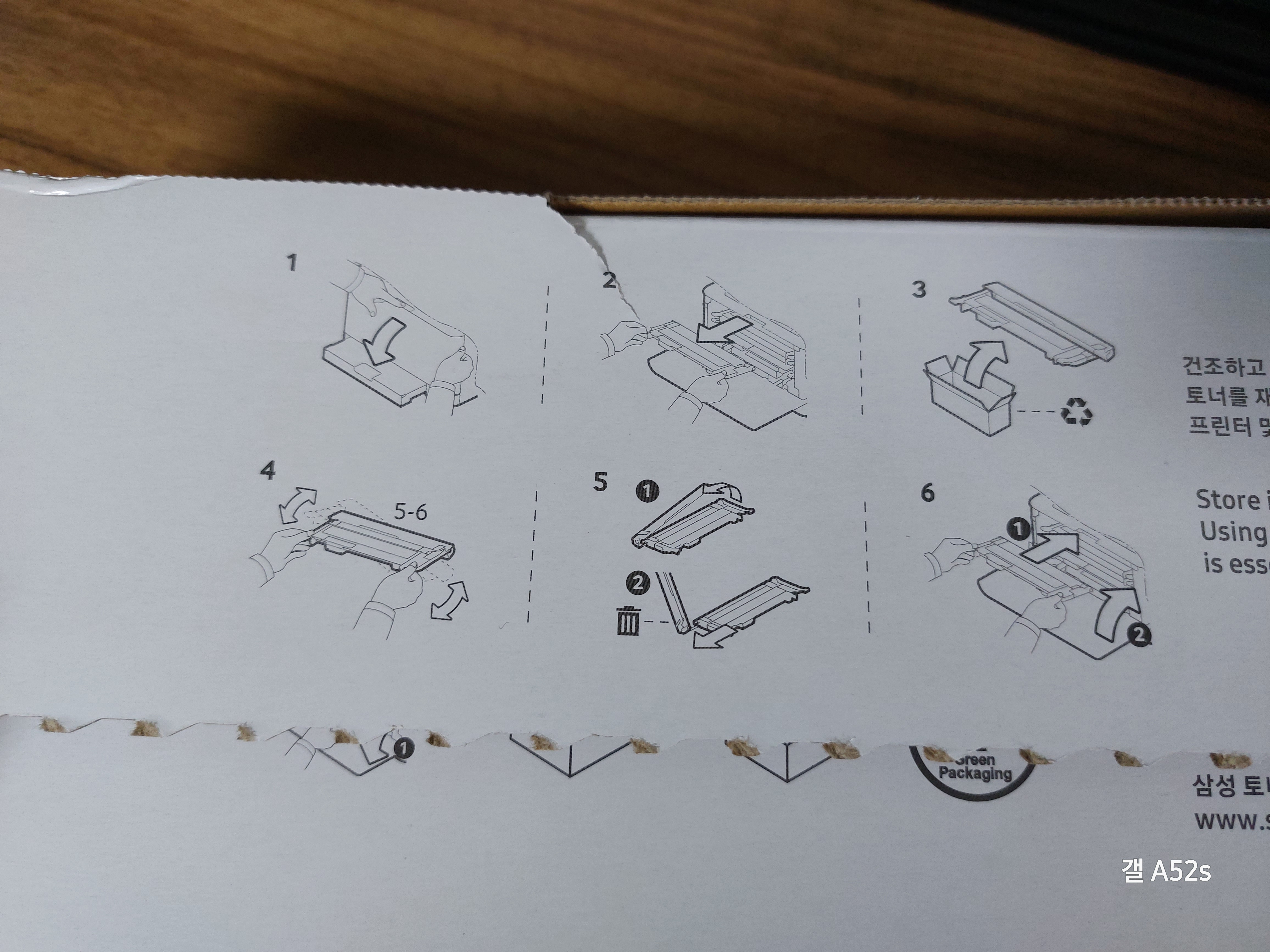 제가 집에서 자주 프린터를 사용한다면 재생 토너를 사용하겠지만 집에서는 많이 사용해 봤자 얼마되지 않아서.. 정품 토너를 구매했습니다.