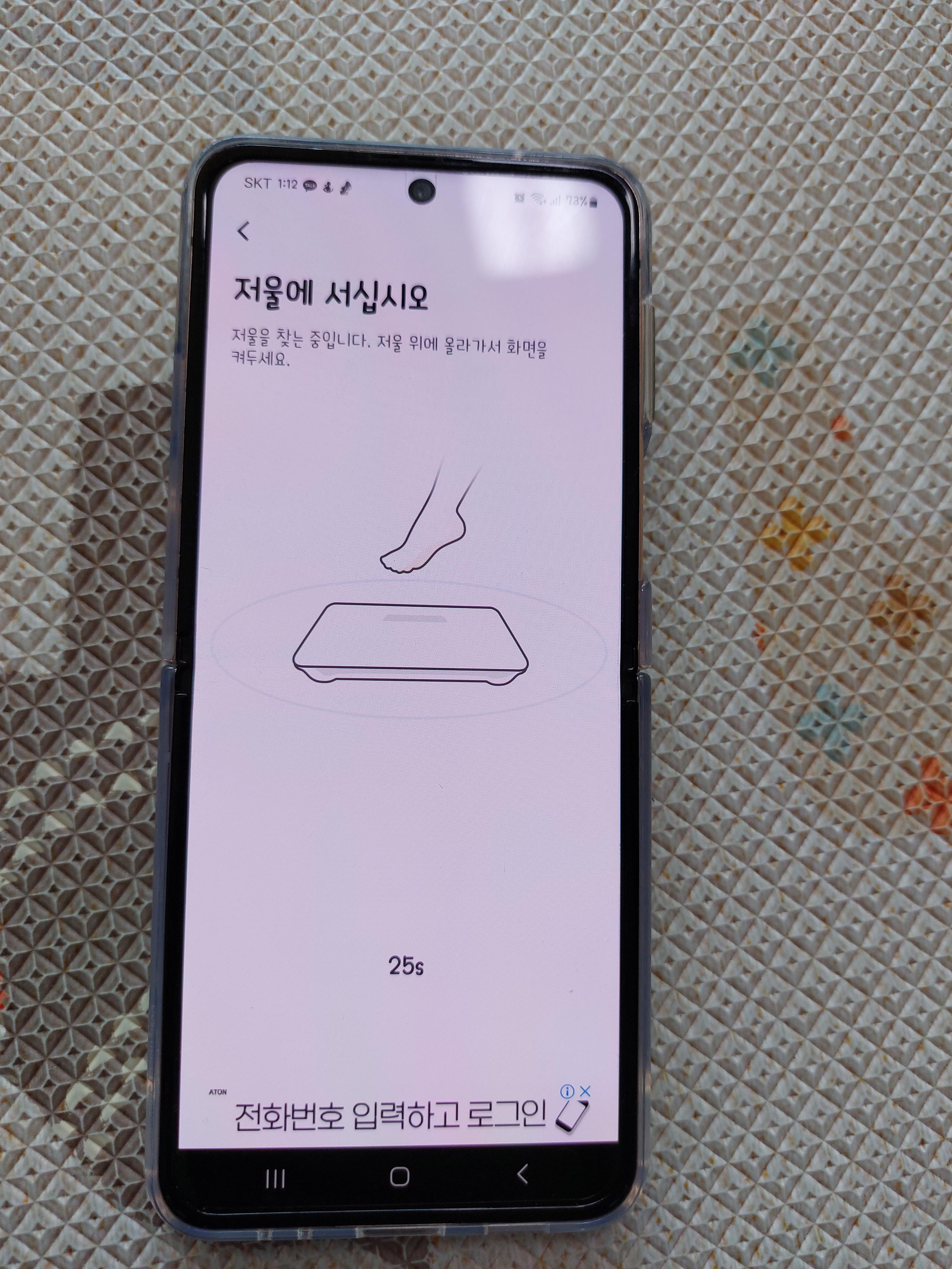 5. 그럼 바로 스마트폰과 체중계가 연동이 되면서, 무게와 인바디 측정을 진행합니다.