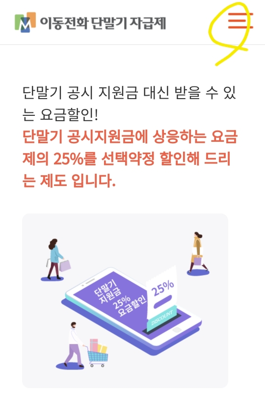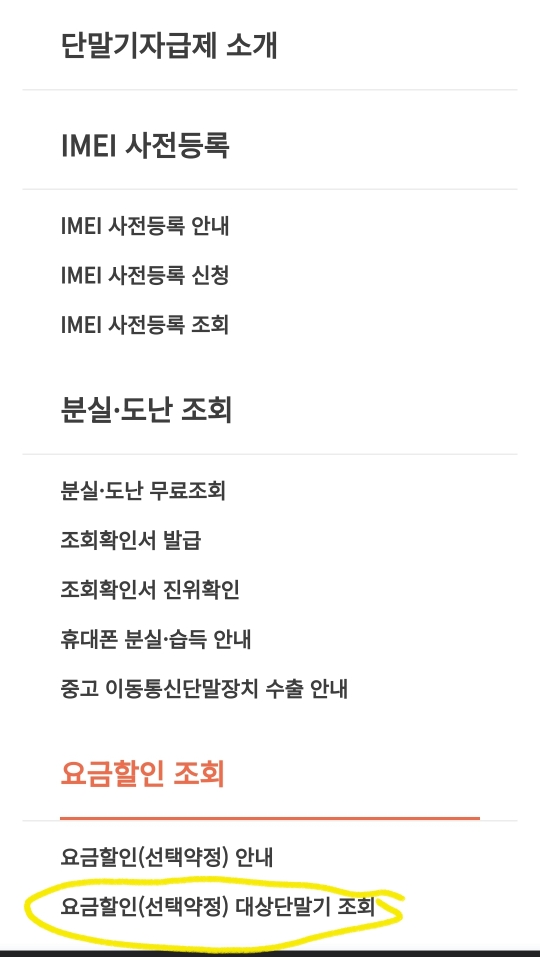 3. 이동전화 단말기 자급제 홈피에서 상단 3줄을 선태