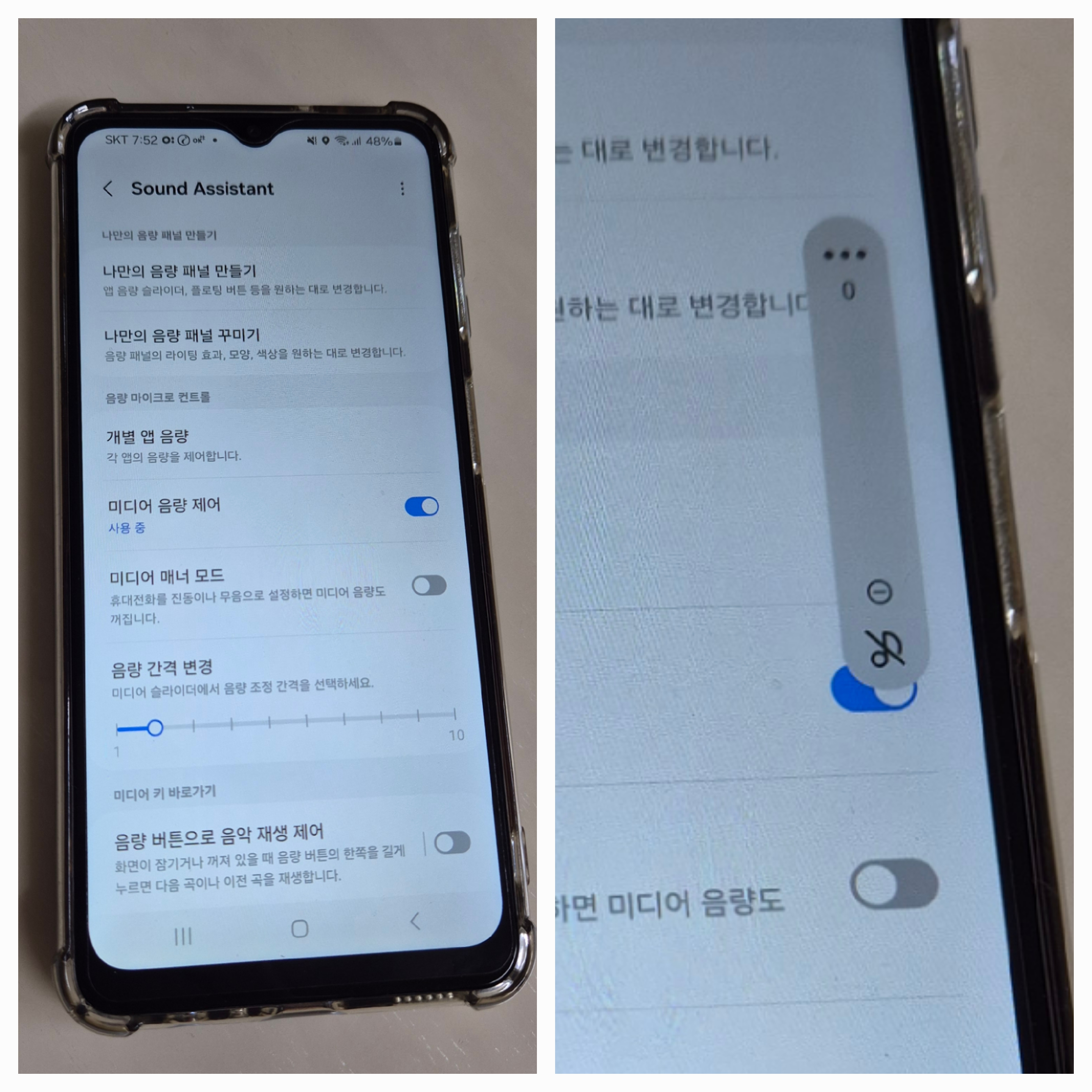 기본세팅은 볼륨 업 다운 버튼을 누를때 마다