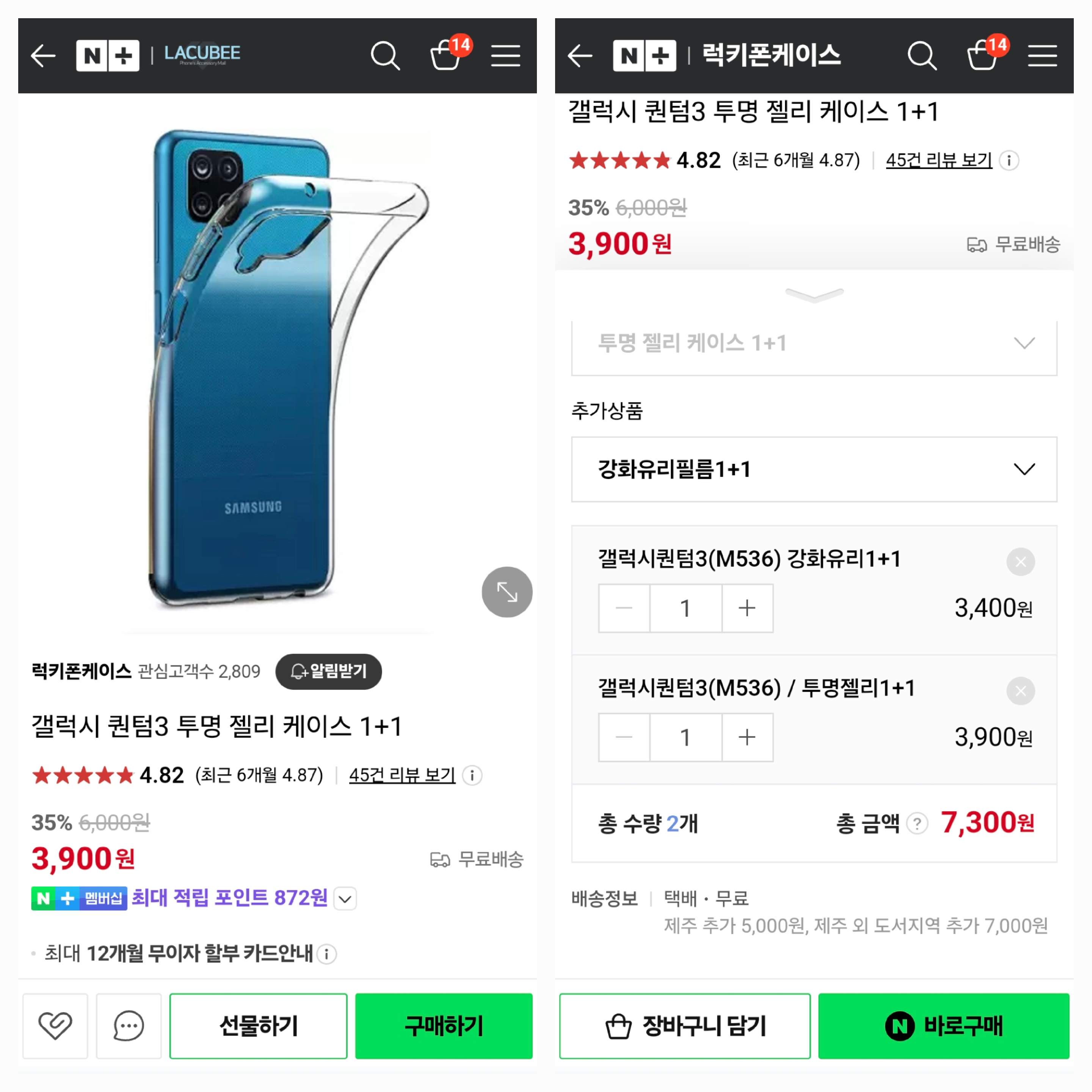 최근에 세컨폰으로 구매한 갤럭시 퀀텀3 젤리 케이스와 강화 요리를 구매했습니다.