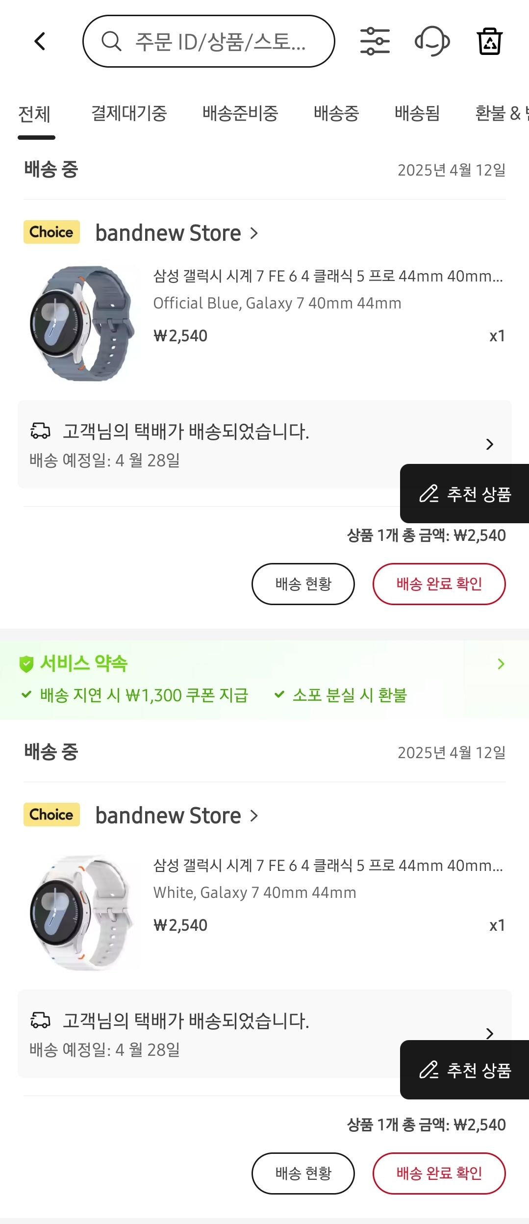 갤럭시 워치7 용으로 구매하였지만,