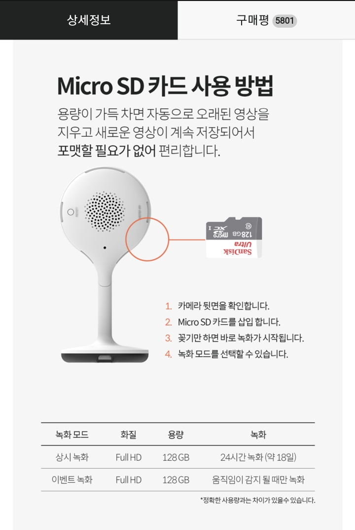 마이크로 메모리카드가 들어 가기 때문에 기기 영상을 계속해서 저장이 가능하고, 설정에 들어가서 모션이 있을때만도 사용이 가능합니다.