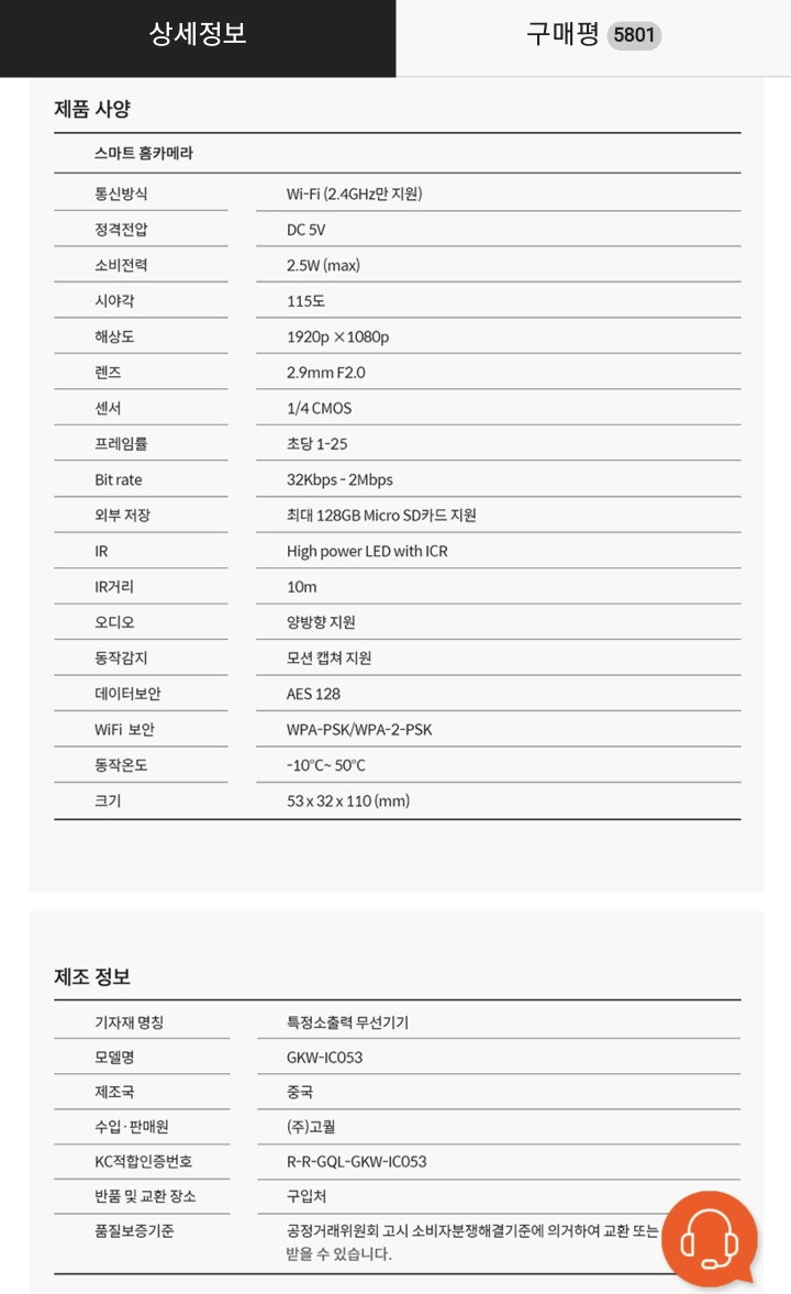 우선 헤이홈 카메라의 스펙을 볼께요!