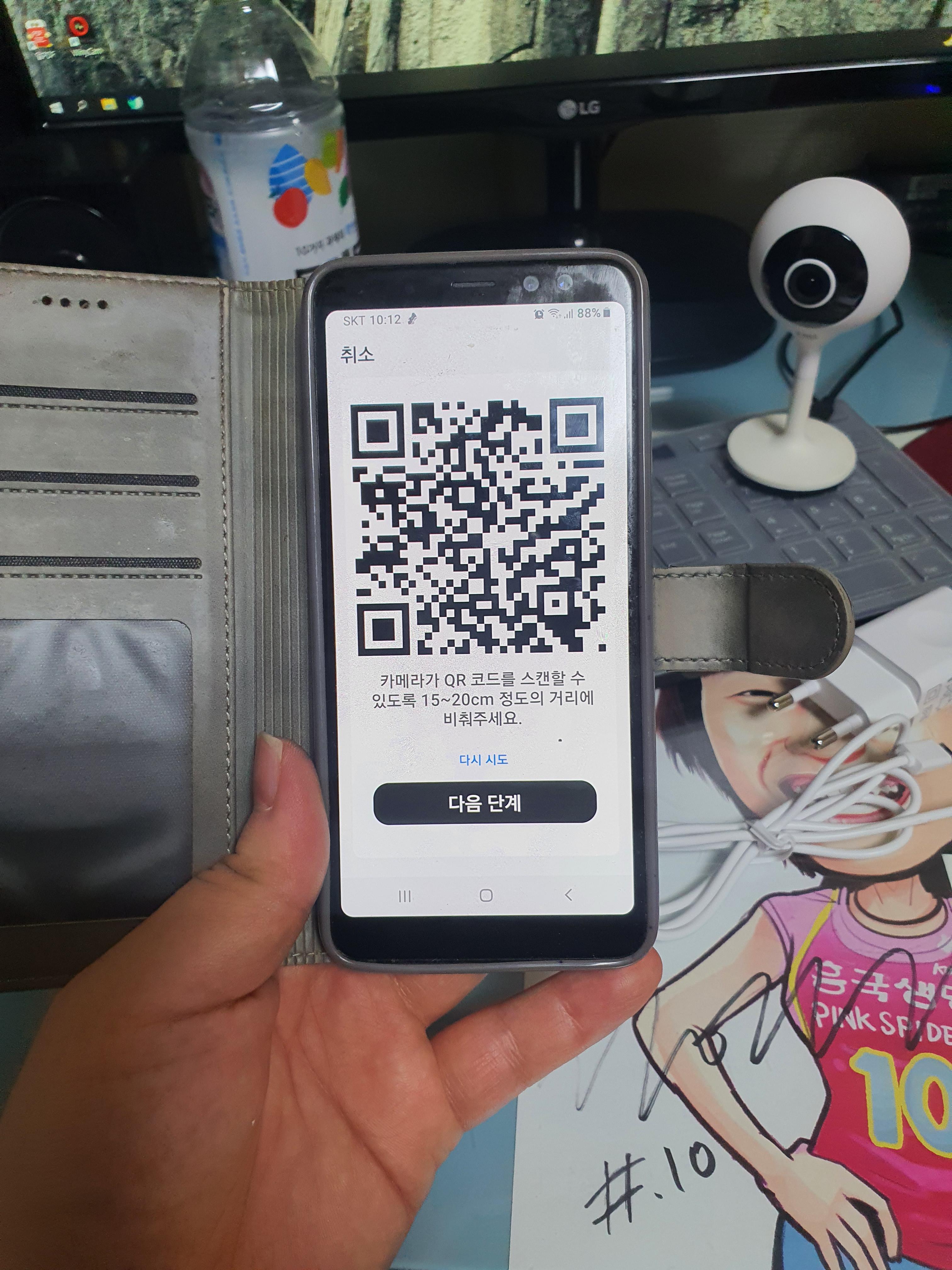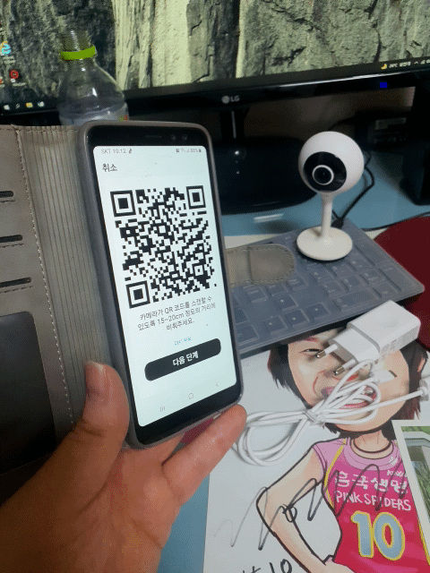 아래 영상처럼 비춰주면 카메라서 "디링-"하면서 소리가 나오고 연동이 완료 됩니다.