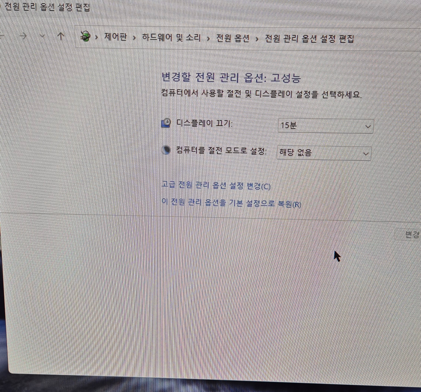 6. 변경값 저장을 누르시면 지금부터는 키보드 전원 버튼을 눌러도 컴퓨터 전원이 꺼지지 않고 디스플레이 모니터만 꺼질 거예요.