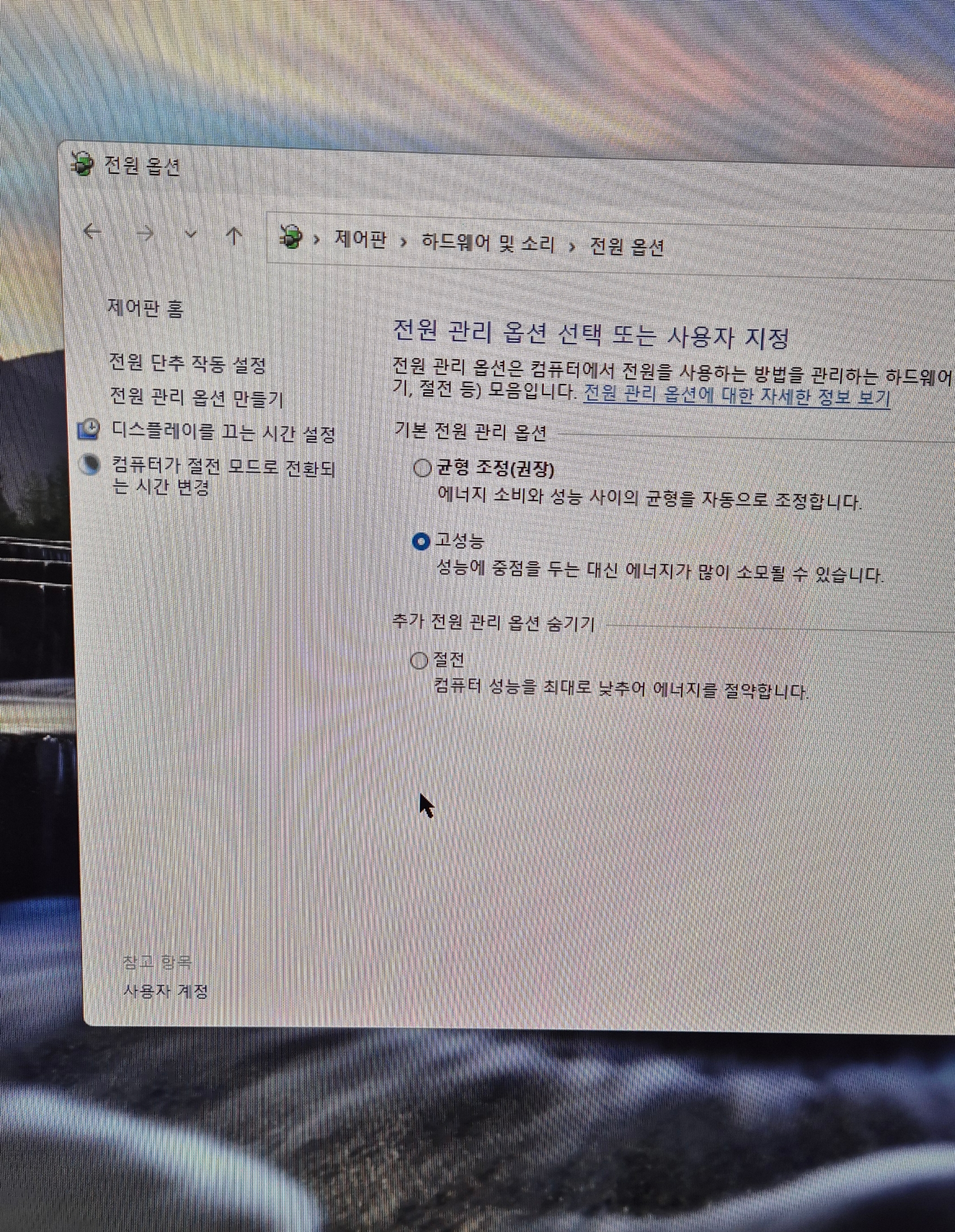 3. 맨 위 상단에 "전원 옵션" 이란 글자를 선택해 주세요