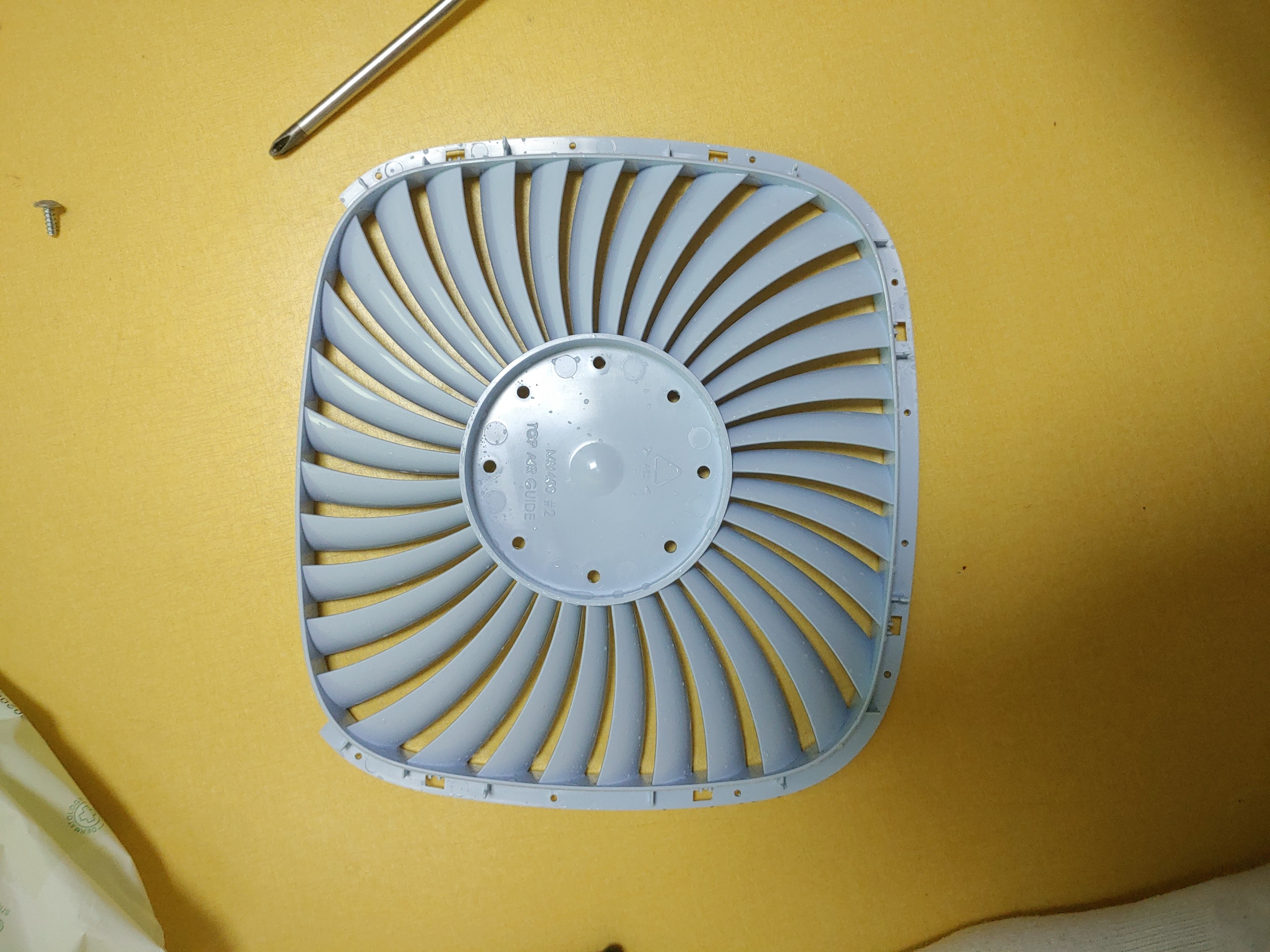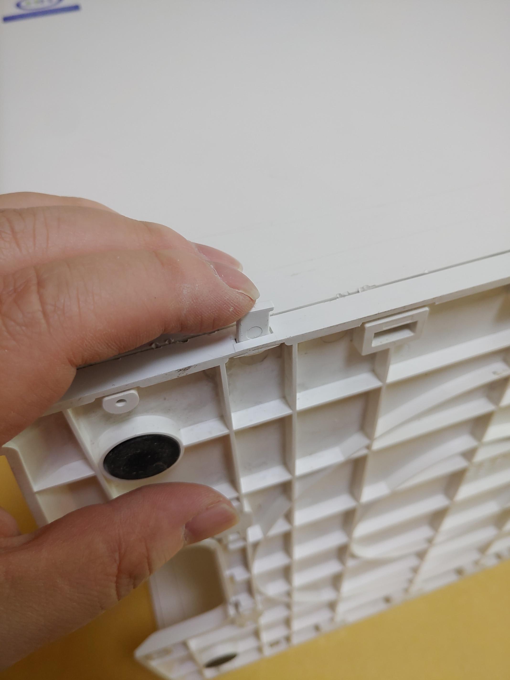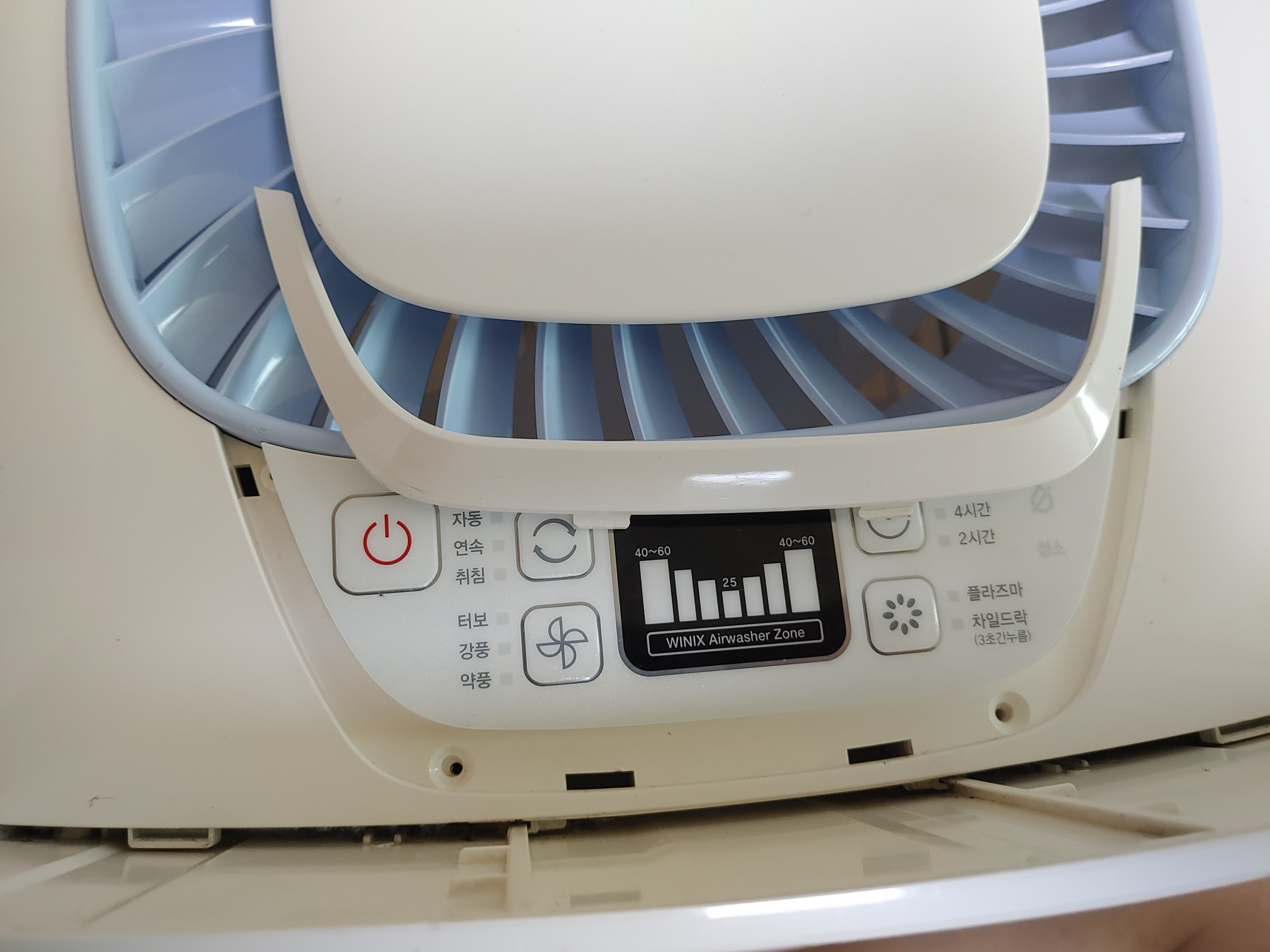 3. 그담에 위쪽 에어워셔의 상단 컨트롤 패널의 플라스틱을 떼어내야합니다.