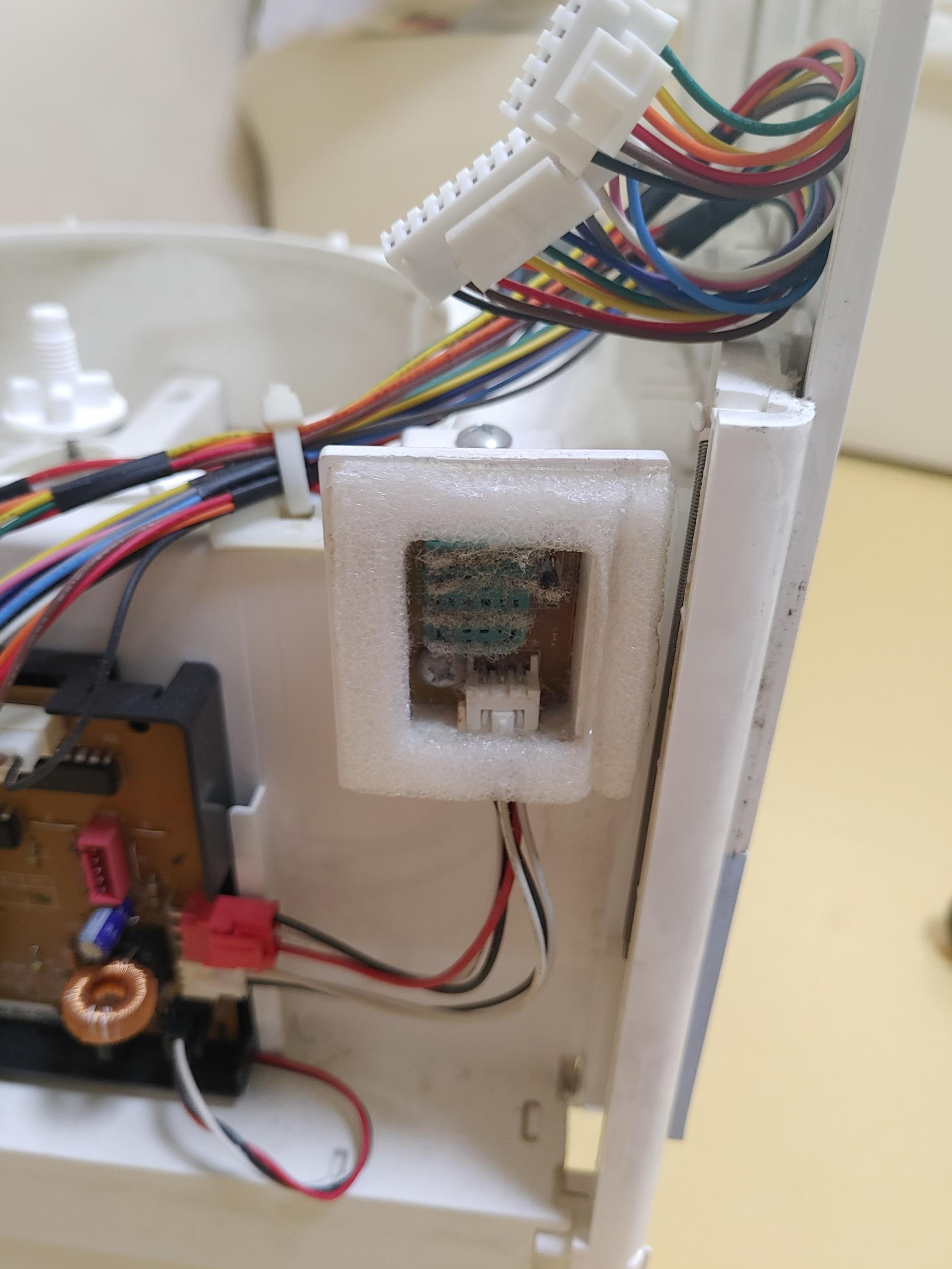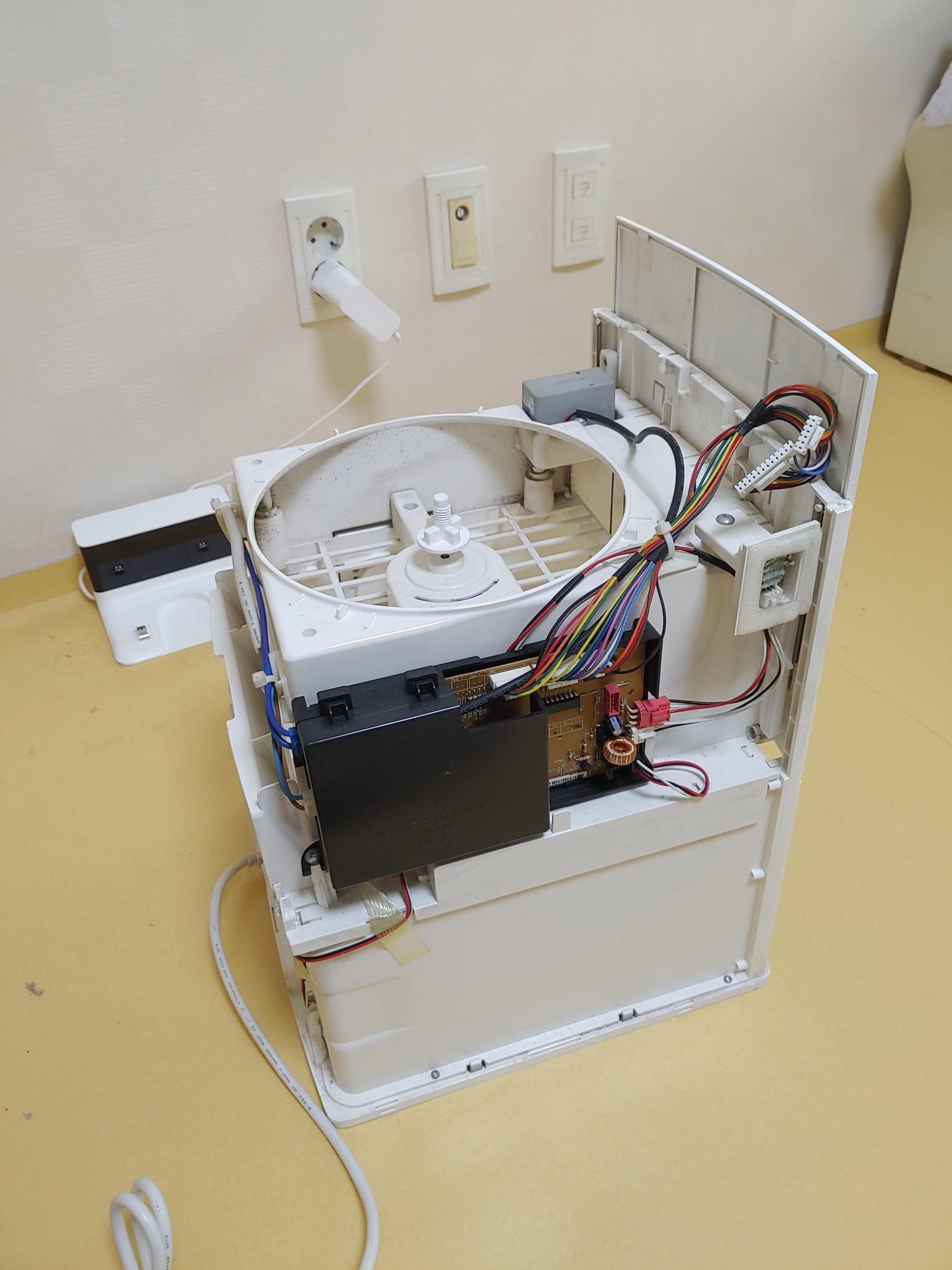 6. 여기서 에어워셔 상단에 컨트롤로 패널에 연결된 선을 2개를 빼냅니다.